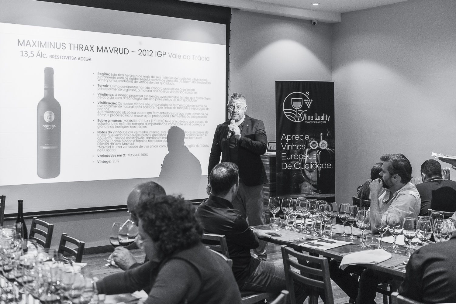 the Restaurant Praca Sao Lourenco in the framework of the EU financed campaign “Wine Quality”. Participants from the Horeca sector, distributors, journalists, and more had the opportunity to broaden their knowledge about the superior quality of the European Wines, their specific properties and flavors. The European financed campaign “Wine Quality” aims to promote the high quality European PDO/PGI wines that being produced with the highest quality and food safety standards and reach as many consumers as possible to increase the product awareness and offer them the opportunity to savour the European PDO/PGI wines exceptional taste, freshness and aromas. A famous sommelier, Cesar Berardi, well known for his wine knowledge, welcomed the guests and introduced them to the high-quality European wines that being produced with the highest quality and food safety standards and reach as many consumers as possible to increase the product awareness and offer them the opportunity to savour the European wines exceptional taste, freshness and aromas. The places were organized accordingly with the banner of the Wine Quality program. The products and the informational brochures were placed in a visible location. Supporting personnel developed a attendees list. A total of 38 people attended the event.